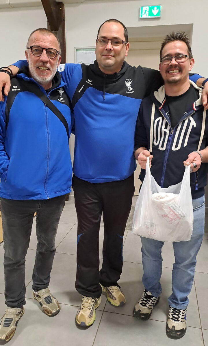 10 triplettes en lice pour un concours en 4 parties non pas au terrain de boules extérieur mais à la salle polyvalente. Vous avez bien lu salle polyvalente !