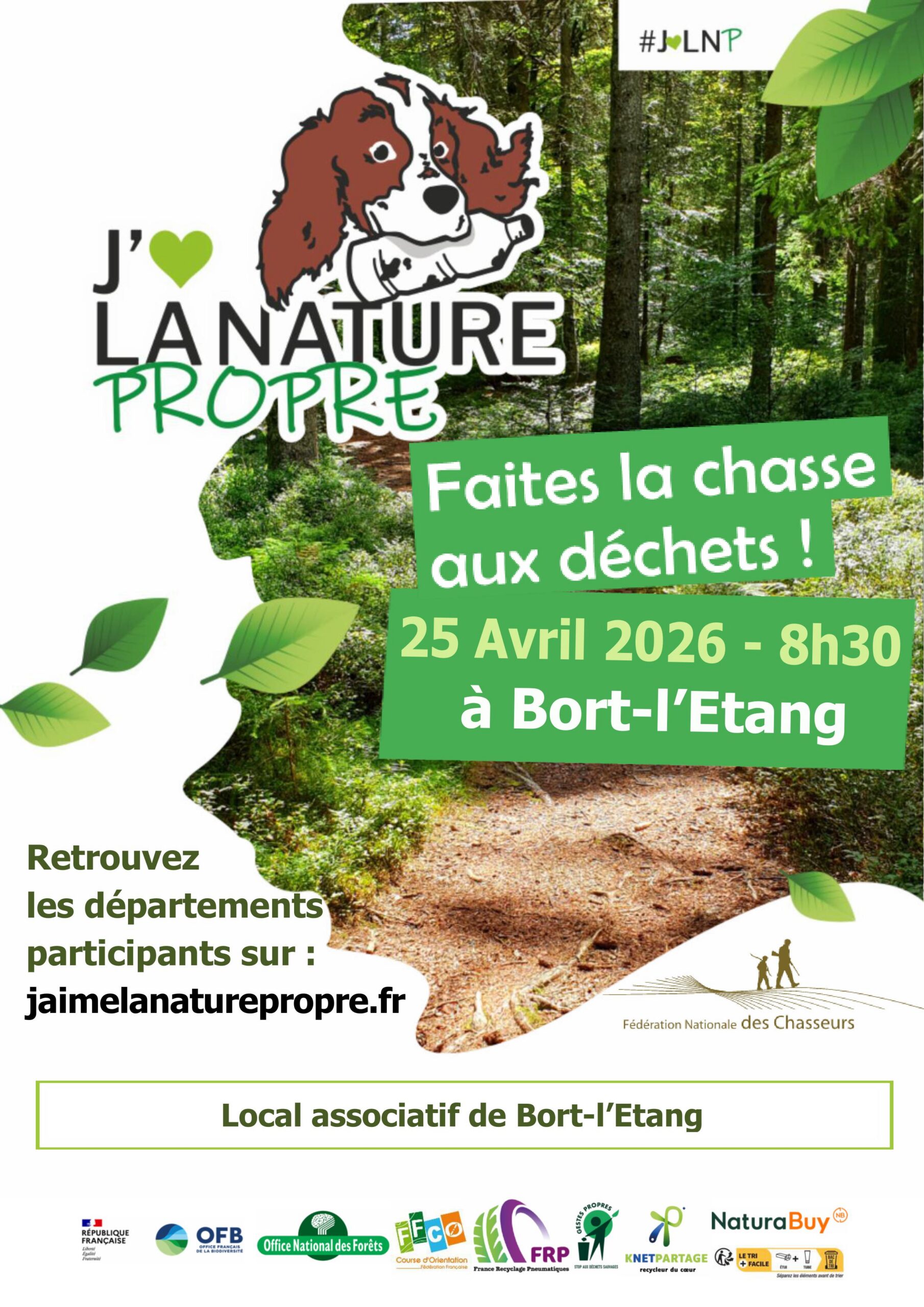 La société de chasse de Bort l’étang organise, en partenariat avec la Fédération Nationale des chasseurs, une matinée pour nettoyer la nature, le rendez vous est donné samedi 25 avril 8h30 au local associatif