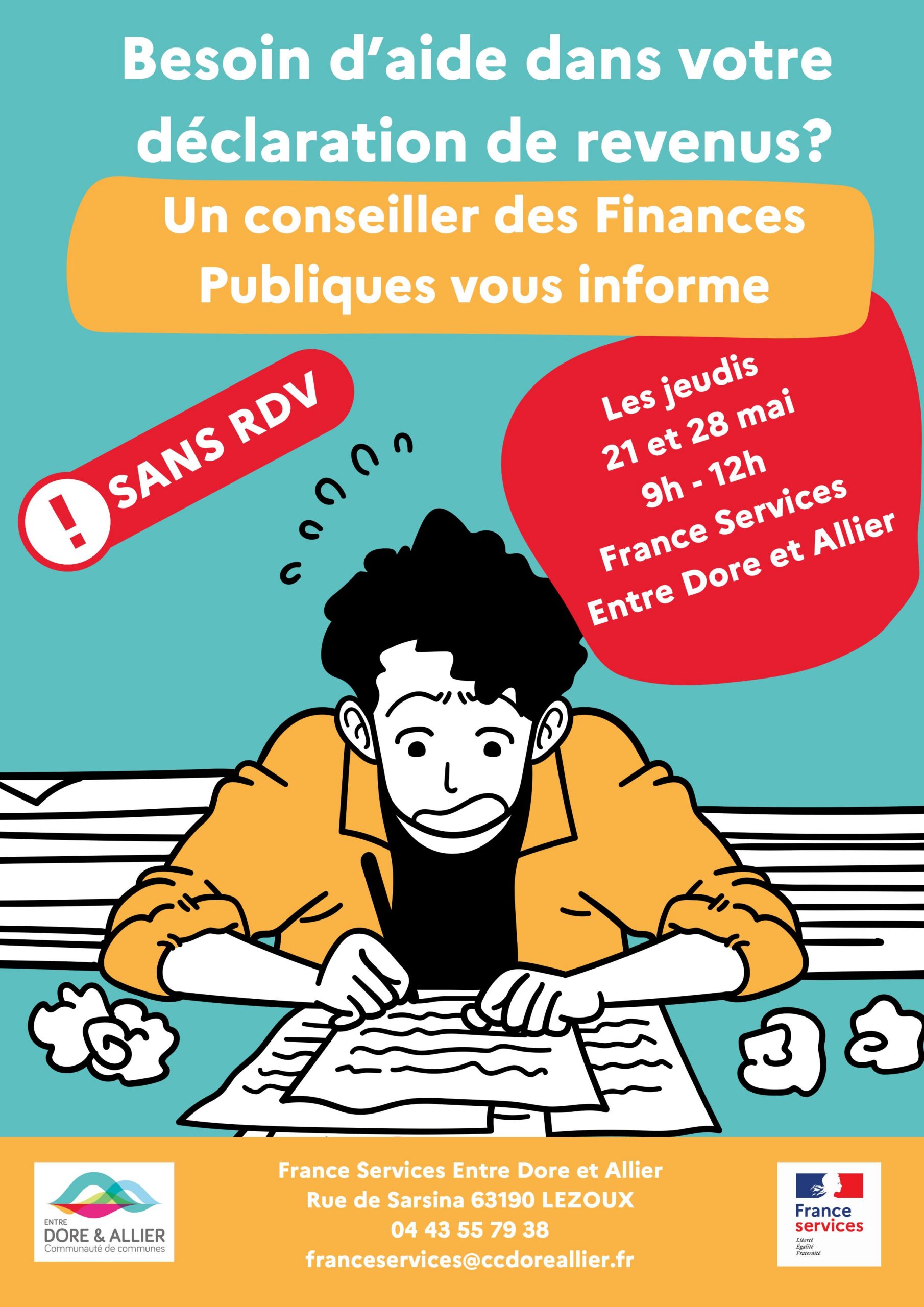 • 2 permanences des impôts : les jeudis 21 et 28 mai de 9h à 12h (SANS RDV)